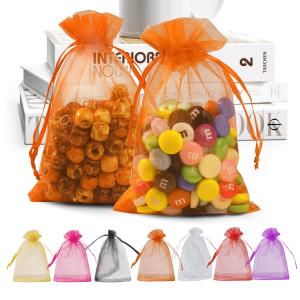 ANZNKU 100 Pack Organza Bags, 4 x 6 inch Small Bags, Premium Orange Favor Bags with Drawstring, Gift Bags, Sheer Mesh Bags, Packaging Bags for Wedding
