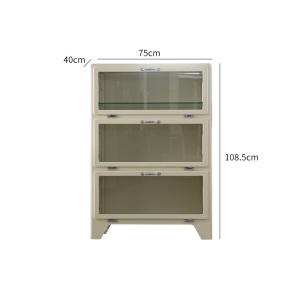 CAGUUU マグネット対応ガラスドアキャビネット L75*W40*H108.5cm キッチンキャビネット 大容量収納 スチールラック 引き出しと棚付き