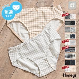 ショーツ レディース パンツ まとめ 下着セット ボーダー チェック 柄 綿 黒 防臭 Honeys ハニーズ スタンダードショーツ(2枚組)