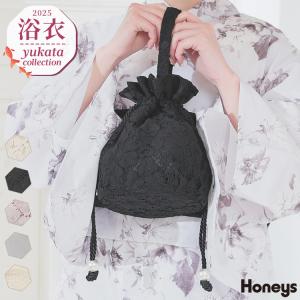 和小物 浴衣用 ゆかた用 巾着 バッグ ウォッシャブル 古風 花柄レー SALE Honeys ハニーズ 浴衣巾着(ワンハンドル)