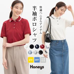 トップス ポロシャツ カットソー 半袖 ハニさら 大きいサイズ UVカット 吸水速乾 SALE Honeys ハニーズ 半袖ポロシャツ