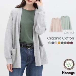 トップス カットソー 長袖 オーガニックコットン Tシャツ ロンT 長袖Tシャツ レディース Honeys ハニーズ オーガニッククルーT