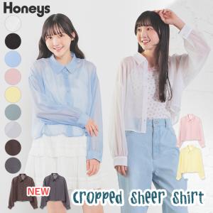 トップス シアーシャツ シャツ ブラウス 長袖 再生ポリエステル シアー素材 ショート SALE Honeys ハニーズ ショート丈シアーシャツ