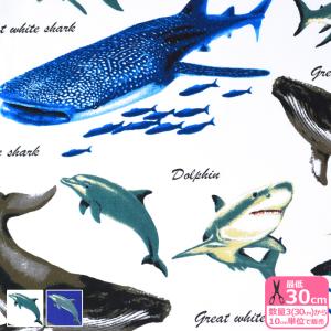 Cool Ocean Friends オックス 魚 魚柄 サメ サメ柄 ウミガメ ウミガメ柄 イルカ オックス生地 プリント生地 生地 布 HSK813 数量3(30cm)から10cm単位 7438