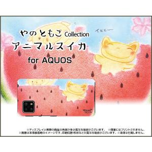 AQUOS sense5G TPU ソフト ケース/カバー ガラスフィルム付 アニマルスイカ やのともこ デザイン 夏 ねこ スイカ アニマル パステル ぶた