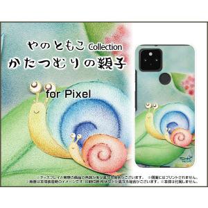 Google Pixel 5 グーグル TPU ソフト ケース/カバー ガラスフィルム付 かたつむりの親子 やのともこ デザイン かたつむり 親子 滴 あじさい 梅雨