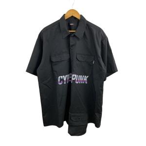 MYne MIHARA YASUHIRO◆CYBER PUNK WORK SHIRT/半袖シャツ/M/ポリエステル/ブラック/G03SH121/マイン