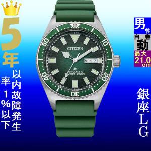 腕時計 メンズ シチズン オートマチック ケース幅40mm プロマスター ポリウレタンベルト シルバー/グリーン色 CITIZEN 141QNY012109X