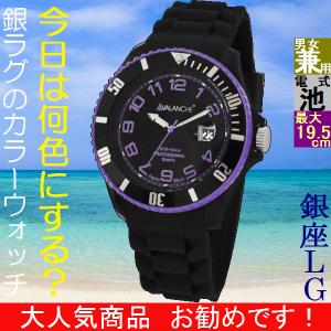 腕時計 メンズ・レディース兼用 アバランチ クォーツ ケース幅45mm デラックス ポリウレタンベルト ブラック/ブラック×パープル色 AVALANCHE 1AQAV1019SBKP44