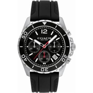腕時計 メンズ コーチ クォーツ ケース幅45mm ケント クロノグラフ ポリウレタンベルト シルバー/ブラック色 COACH 1C8814602565
