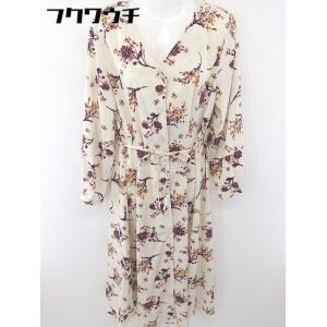 ◇ ◎ fifth フィフス 花柄 Vネック 長袖 ロング ワンピース サイズM アイボリー マルチ レディース