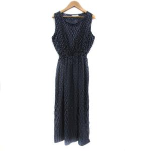フィフス fifth ワンピース マキシ丈 ロング丈 ノースリーブ ラウンドネック ドット柄 紺 ネイビー 白 ホワイト /YS15 レディース