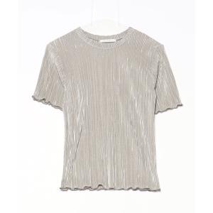 ◇ fifth フィフス 異素材 ギャザ− フレア インナ−シア− 長袖 ニットチュニック 表記なし グレー レディース E