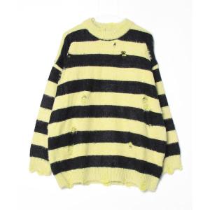 セーター ニット Distressed Wide Stripe Fuzzy Sweater / クラッシュワイドボーダーシャギーニットプルオーバー
