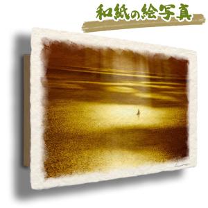 風水 玄関 に 飾る 絵 画 和紙の絵写真 「雲間の光芒とヨット」 海 金色
