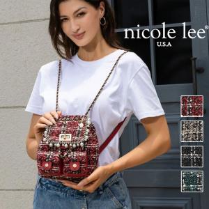 数量限定 NICOLE LEE ニコールリー P17102 ツイード ミニバックパック パール レディース スパンコール チェーンショルダー ミニリュック ラメ