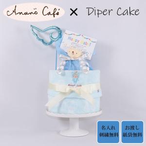おむつケーキ 出産祝い アナノカフェ 1段 ブルー 名入れ刺繍 ダイパーケーキ 誕生日祝い ベビーシャワー