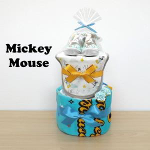 おむつケーキ 男の子 ミッキーマウス ディズニー スタイ ベビーソックス フェイスタオル 2段 出産祝い