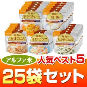 ヤマックスオリジナルアルファ米セット アルファ米人気ベスト5【5年長期保存】25袋セット(わかめごはん・えびピラフ・五目ごはん・白飯・ドライカレー各5
