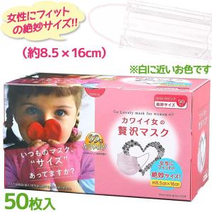 不織布 マスク 小顔 小さめ 立体 プリーツ カワイイ女の贅沢マスク 50枚入 ピンク 使い捨て 女性 ウイルス対策 血色マスク 小顔マスク 快適 原田産業
