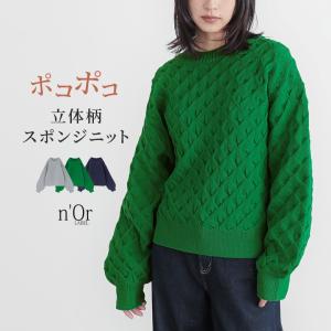 ニット レディース トップス 長袖ニット スポンジニット 立体柄 ポコポコ ボリューム袖 ショート丈 伸縮性「メール便不可」「50」