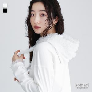カットソー レディース トップス 長袖 フード付き フーディー チュール インナー レイヤード 重ね着 プルオーバー 春 秋 冬「メール便不可」「20」