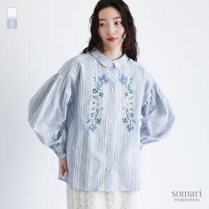 ブラウス シャツ レディース トップス 長袖 花柄 フラワー フレア ストライプ柄 無地 綿混 コットン「メール便不可」「20」