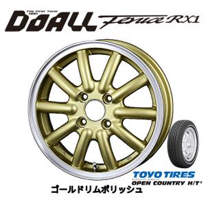 DOALL Fenice RX1 軽自動車 4.5J-14 +45 4H100 ゴールド/リムポリッシュ & トーヨー OPEN COUNTRY H/TII 155/65R14