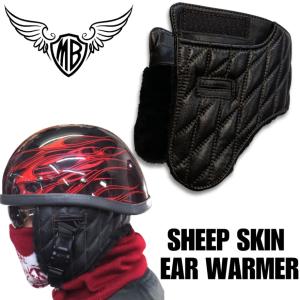 【送料無料】MOTOBLUEZ オリジナル シープスキン ダイヤステッチ イヤーウォーマー 耳当て MB-XW01 防寒 防風 半キャップ用 簡単取り付け