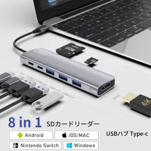 Type-C USBハブ 8in1 Type C 変換アダプタ Switch検証済み USB C ハブ Type C Hub HDMI出力 PD給電 USB3.0 ハブ Micro SDカードリーダ