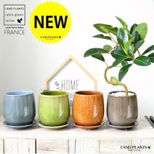 【4色】 フランスゴム(大葉曲がり) 落ち着きのある 陶器鉢【天然砕石・受皿・育て方】 フィカスルビギノーサ ルビキノーサ ルビキノーザ ゴム ゴムの木 フィカ