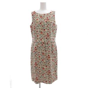 キース KEITH ワンピース 麻 40 ベージュ系 花柄 ノースリーブ ラウンドネック /SC ■GY61 レディース