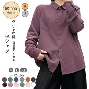 [12月7日まで20%OFFクーポン] 綿シャツ レディース 秋 冬 春 M L XL 薄起毛 微起毛 ライトネルシャツ 綿100% ピーチ起毛 長袖シャツ 白 ホワイト 紫 プ