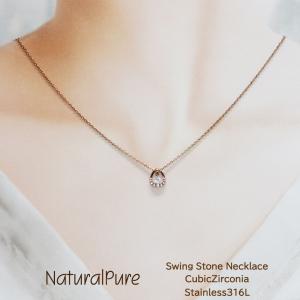 ステンレスネックレス ストーン ネックレス つけっぱなし ピンクゴールド シルバー 錆びないネックレス ステンレス レディース 揺れる 石