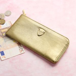 長財布 レディース 本革 L字ファスナー ブランド 革 ゴールドカラー 牛革 財布 スリム 薄型 GOLD PFEIL(09000448r) 金運