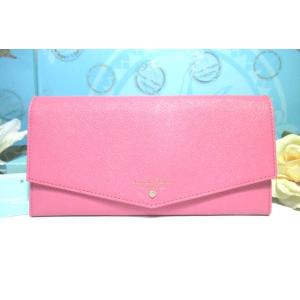 送料無料 サマンサタバサ 限定 ロゴ入 キラキラ ハート付 本牛革 シンプル かぶせ 長財布 フューシャピンク 展示未使用 タグ付 ギフト包装無料 開運 金運 春財布