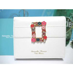 送料無料 サマンサタバサ 本牛革 フラワーベルト 二つ折り財布 折財布 白 新品 タグ付 ギフト包装無料 プチチョイス 開運 金運up 春財布 サマンサベガ