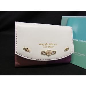 送料無料 サマンサタバサ キラキラ ビジュー付 ロゴ入 本牛革 かぶせ 長財布 オフホワイト 白 新品 証明書付 ギフト包装無料 開運 金運up 春財布