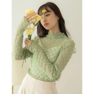 アースミュージック&エコロジー EARTH MUSIC & ECOLOGY カットソー プルオーバー シフォン シアー 花柄 レース ラウンドネック 7分袖 M オ