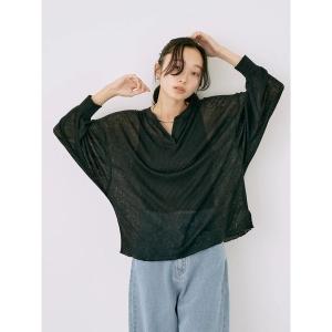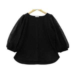 アースミュージック&エコロジー EARTH MUSIC & ECOLOGY バルーンスリーブ プルオーバー シアー カットソー F BLACK(ブラック) 春夏 レディ