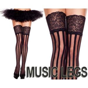 MusicLegs(ミュージックレッグ) シリコンレーストップ シアー×オペークサイハイタイツ/ストッキング 47617 黒 ブラック ダンス衣装 パーティー ウェディング