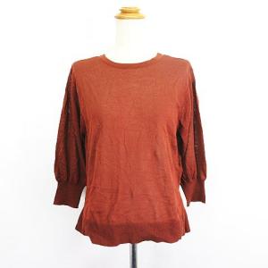 未使用品 アースミュージック&エコロジー ニット カットソー 七分袖 バックリボン シアー 接触冷感 F ブリックレッド 茶 ※EKM レディース