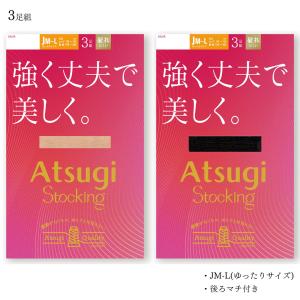 (3足組)ATSUGI STOCKING 強く丈夫で美しく ストッキング 大きいサイズ JM-L 後ろマチ付き レディース パンスト ag-fp14733p D1PK