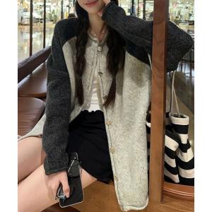 ブルゾン アウター バイカラーニットブルゾン レディース