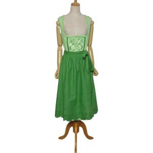 エプロン付き チロルワンピース ディアンドル ドレス レディース Lサイズ位 黄緑色系 民族衣装 古着 ワンピース