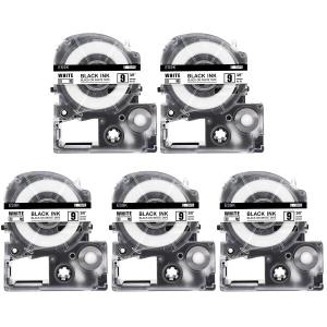 5個 Greateam 9mm 白底黒文字 ラベルテープ 互換キングジム テプラPROテープカートリッジ マ
