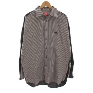 ディーゼル DIESEL S-WARH-STRIPE シャツ ストライプ 切替 長袖 48 白 黒 /YM メンズ