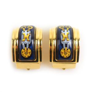 エルメス HERMES イヤリング 七宝焼き メタル/エナメル ゴールド/ネイビー
