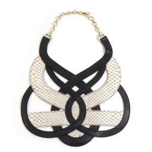 バリー BALLY ネックレス レザー ブラック×アイボリー
