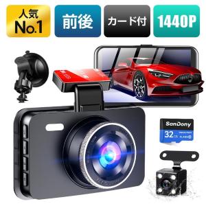 ドライブレコーダー 前後 2カメラ 大画面 32GB対応 高画質 大口径レンズ WDR/HDR 日本製センサー 広角視野 信号機対応 Gセンサー 衝撃録画 駐車監視 ノイズ対策